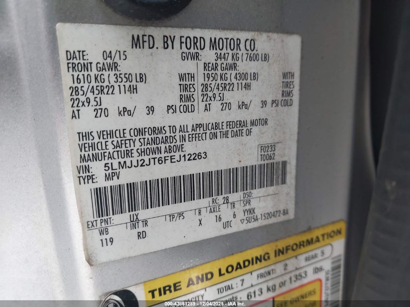 2015 LINCOLN NAVIGATOR 2015 року Бензин, 3.5, Повний привід, vin - 5LMJJ2JT6FEJ12263 з США