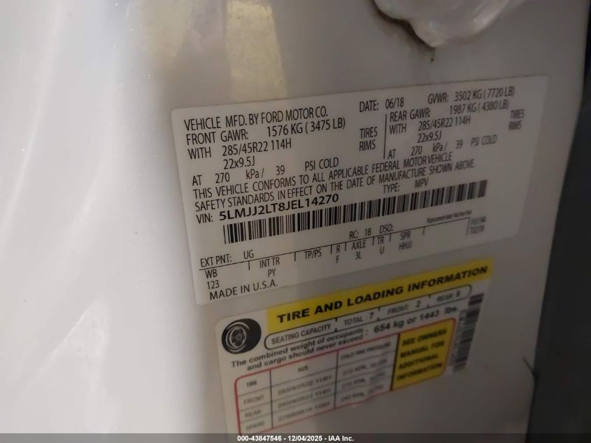 2018 LINCOLN NAVIGATOR 2018 року Бензин, 3.5, Повний привід, vin - 5LMJJ2LT8JEL14270 з США