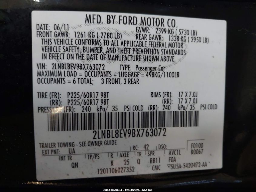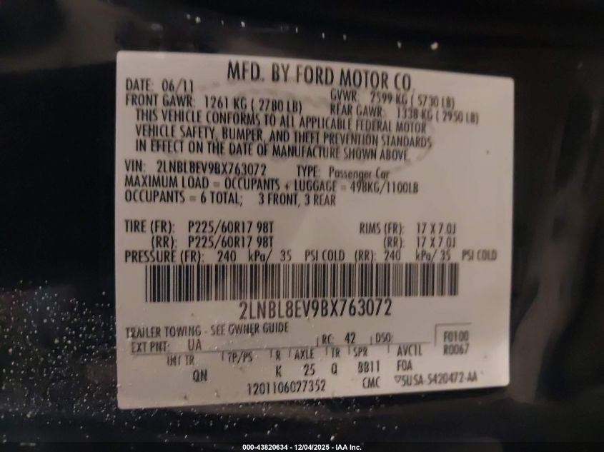 2011 LINCOLN TOWN CAR EXECUTIVE