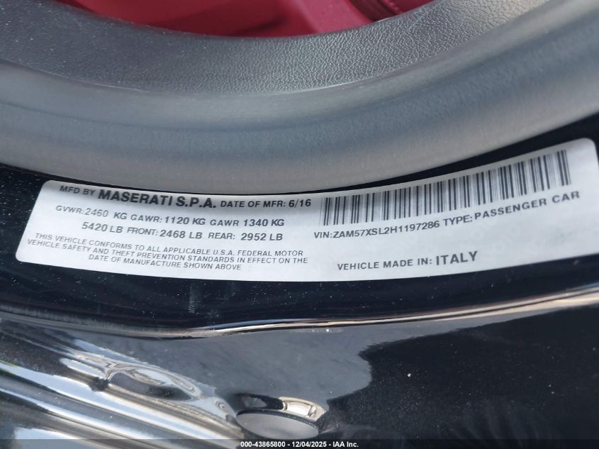 2017 MASERATI GHIBLI 2017 року Бензин, 3.0, Задній привід, vin - ZAM57XSL2H1197286 з США