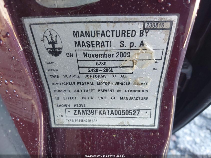 2010 MASERATI QUATTROPORTE 2010 року Бензин, 4.2, Задній привід, vin - ZAM39FKA1A0050527 з США