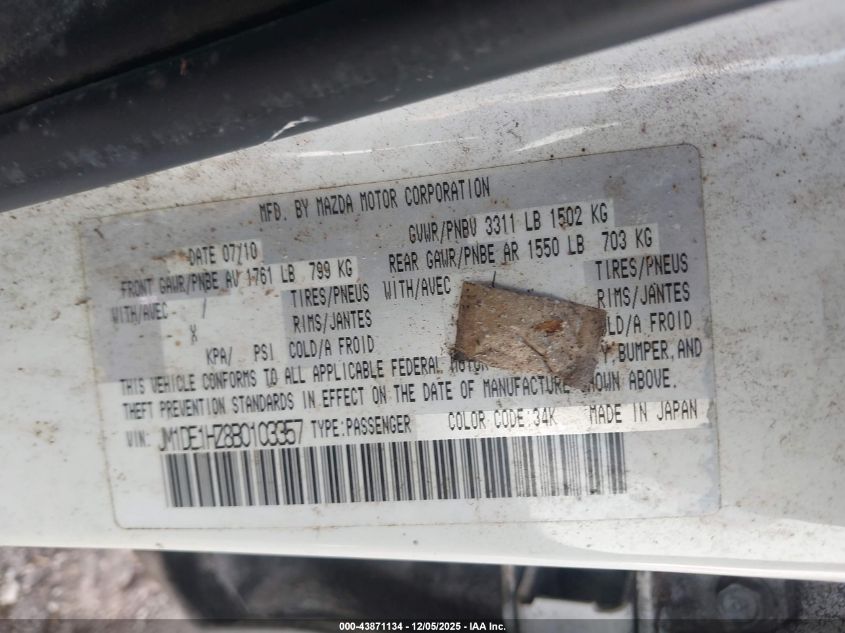 Колір БілийЦиліндри 4Привід Передній привідVIN JM1DE1HZ8B0103357Стан Заводиться та їде (перевірено)Ушкодження Задня AutoRIA