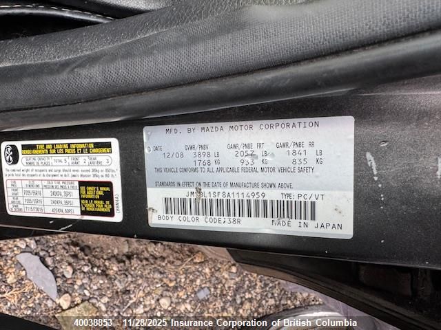 Колір СірийЦиліндри 4Привід Передній привідVIN JM1BL1SF8A1114959Стан СтаціонарноУшкодження Задня ліваДата аукціону 2025-12-08