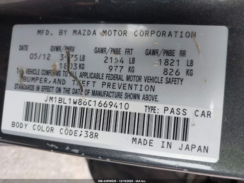 2012 MAZDA 3 2012 року Бензин, 2.0, Передній привід, vin - JM1BL1W86C1669410 з США