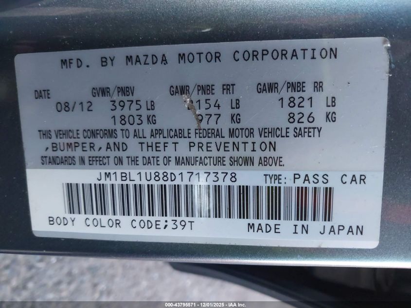 Колір СірийЦиліндри 4Привід Передній привідVIN JM1BL1U88D1717378Стан Заводиться та їде (перевірено)Ушкодження Передня або задня AutoRIA