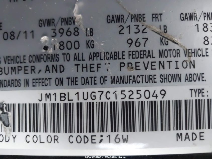 Колір ЧорнийЦиліндри 4Привід Передній привідVIN JM1BL1UG7C1525049Стан Заводиться та їде (перевірено)Ушкодження Звичайний зносДата аукціону 2025-12-15 AutoRIA