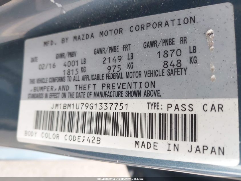 2016 MAZDA 3 2016 року Бензин, 2.0, Передній привід, vin - JM1BM1U79G1337751 з США