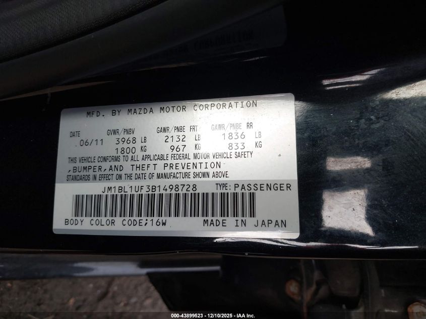 2011 MAZDA 3 2011 року Бензин, 2.0, Передній привід, vin - JM1BL1UF3B1498728 з США
