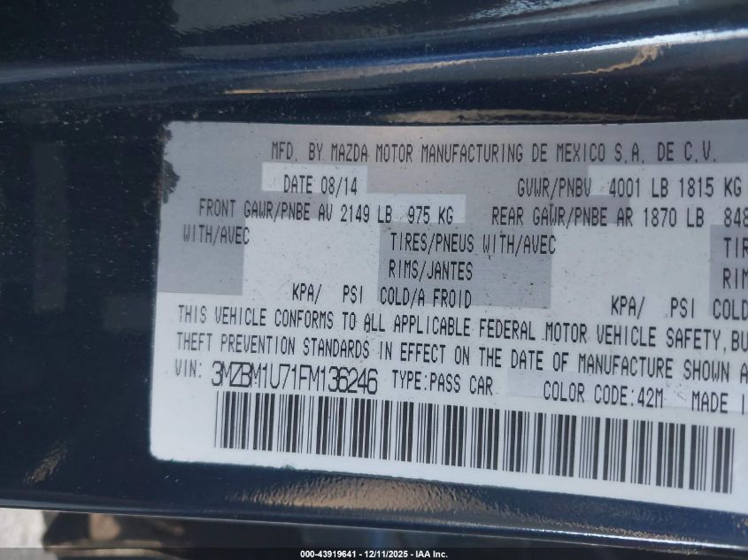 2015 MAZDA 3 2015 року Бензин, 2.0, Передній привід, vin - 3MZBM1U71FM136246 з США