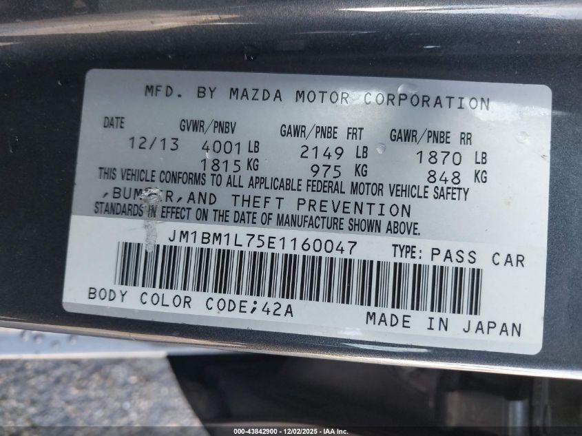Колір СірийЦиліндри 4Привід Передній привідVIN JM1BM1L75E1160047Стан Заводиться та їде (перевірено)Ушкодження Задня праваДата аукціону 2025-12-08 AutoRIA