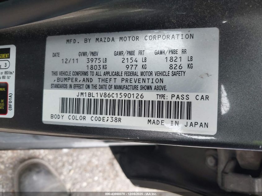 2012 MAZDA 3 2012 року Бензин, 2.0, Передній привід, vin - JM1BL1V86C1590126 з США