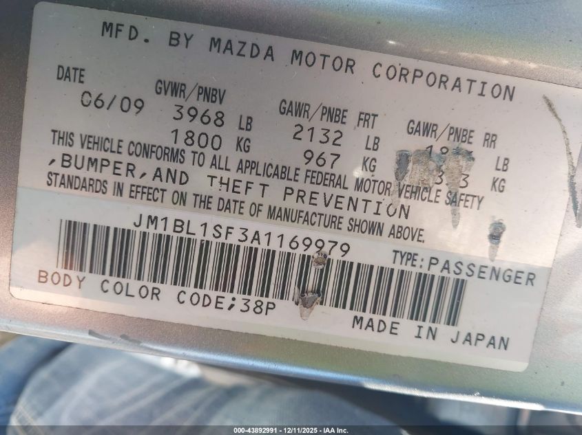 Колір СрібнийЦиліндри 4Привід Передній привідVIN JM1BL1SF3A1169979Стан НевідомоУшкодження Звичайний знос AutoRIA