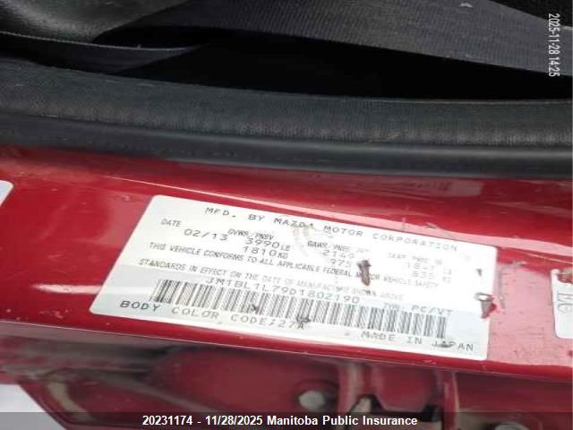 Колір ЧервонийЦиліндри 4Привід Передній привідVIN JM1BL1L79D1802190Стан СтаціонарноУшкодження ПередняДата аукціону 2025-12-10 AutoRIA