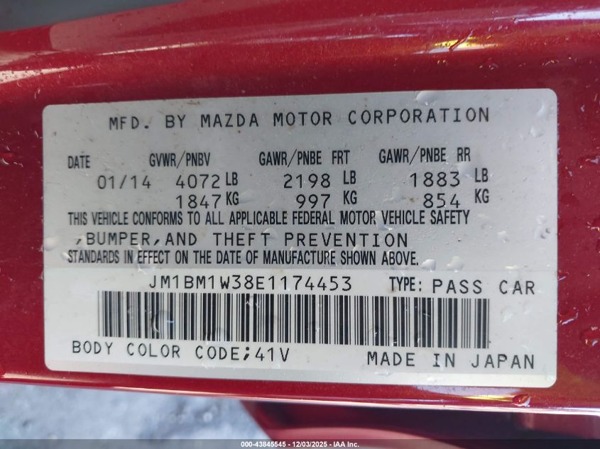 2014 MAZDA 3 2014 року Бензин, 2.5, Передній привід, vin - JM1BM1W38E1174453 з США