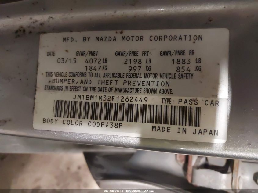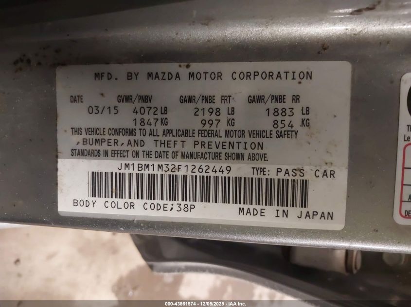 2015 MAZDA 3 2015 року Бензин, 2.5, Передній привід, vin - JM1BM1M32F1262449 з США