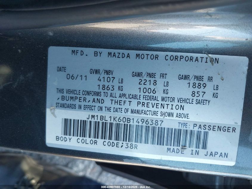 2011 MAZDA 3 2011 року Бензин, 2.5, Передній привід, vin - JM1BL1K60B1496387 з США