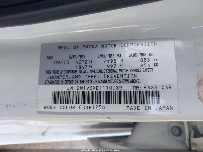2014 MAZDA 3 2014 року Бензин, 2.5, Передній привід, vin - JM1BM1V3XE1110089 з США