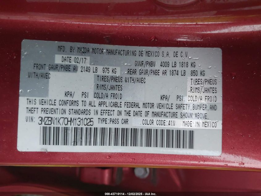 2017 MAZDA 3 2017 року Бензин, 2.0, Передній привід, vin - 3MZBN1K70HM131025 з США