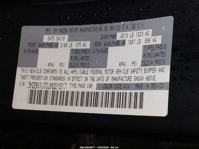 2018 MAZDA 3 2018 року Бензин, 2.0, Передній привід, vin - 3MZBN1U70JM221617 з США