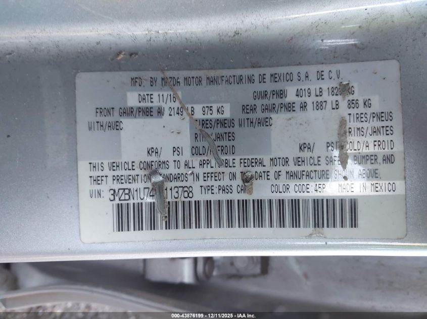 2017 MAZDA 3 2017 року Бензин, 2.0, Передній привід, vin - 3MZBN1U74HM113768 з США