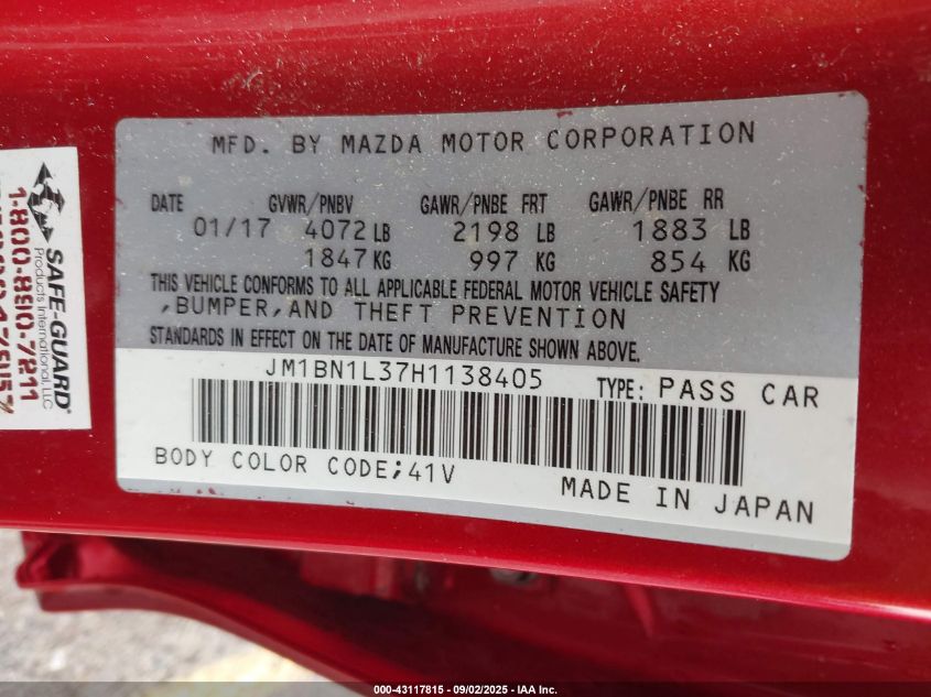 2017 MAZDA 3 2017 року Бензин, 2.5, Передній привід, vin - JM1BN1L37H1138405 з США