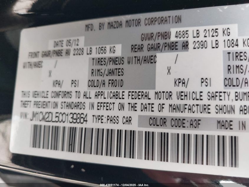 2012 MAZDA 5 2012 року Бензин, 2.5, Передній привід, vin - JM1CW2DL5C0139864 з США