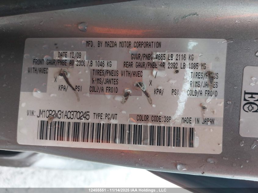 2010 MAZDA 5 2010 року Бензин, , Передній привід, vin - JM1CR2W31A0370245 з США