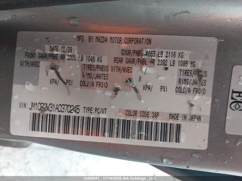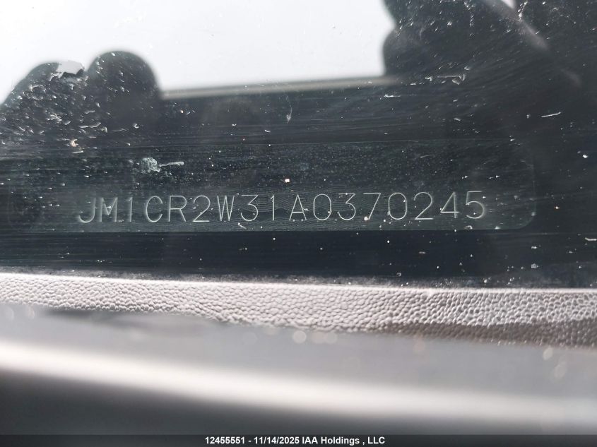 Колір СрібнийЦиліндри 4Привід Передній привідVIN JM1CR2W31A0370245Стан Заводиться та їде (перевірено)Ушкодження Ліва сторонаДата аукціону 2025-12-08 AutoRIA