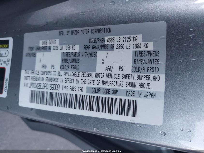 2015 MAZDA 5 2015 року Бензин, 2.5, Передній привід, vin - JM1CW2BL8F0189309 з США