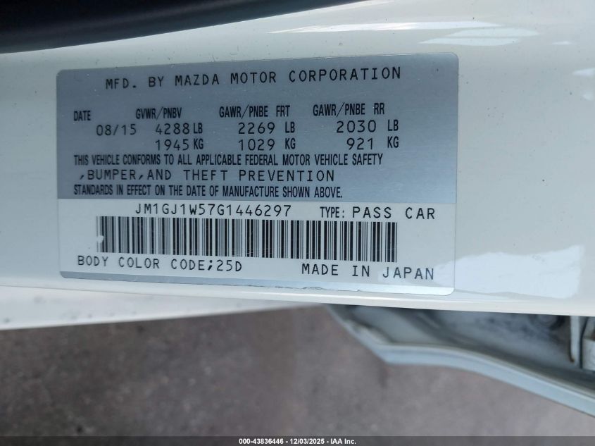 2016 MAZDA 6 2016 року Бензин, 2.5, Передній привід, vin - JM1GJ1W57G1446297 з США