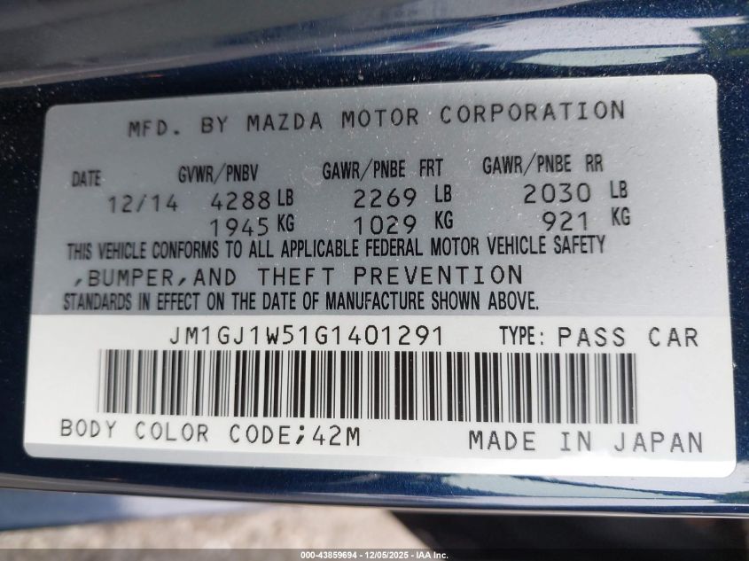 2016 MAZDA 6 2016 року Бензин, 2.5, Передній привід, vin - JM1GJ1W51G1401291 з США