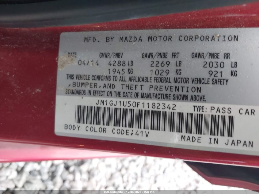 2015 MAZDA 6 2015 року Бензин, 2.5, Передній привід, vin - JM1GJ1U50F1182342 з США