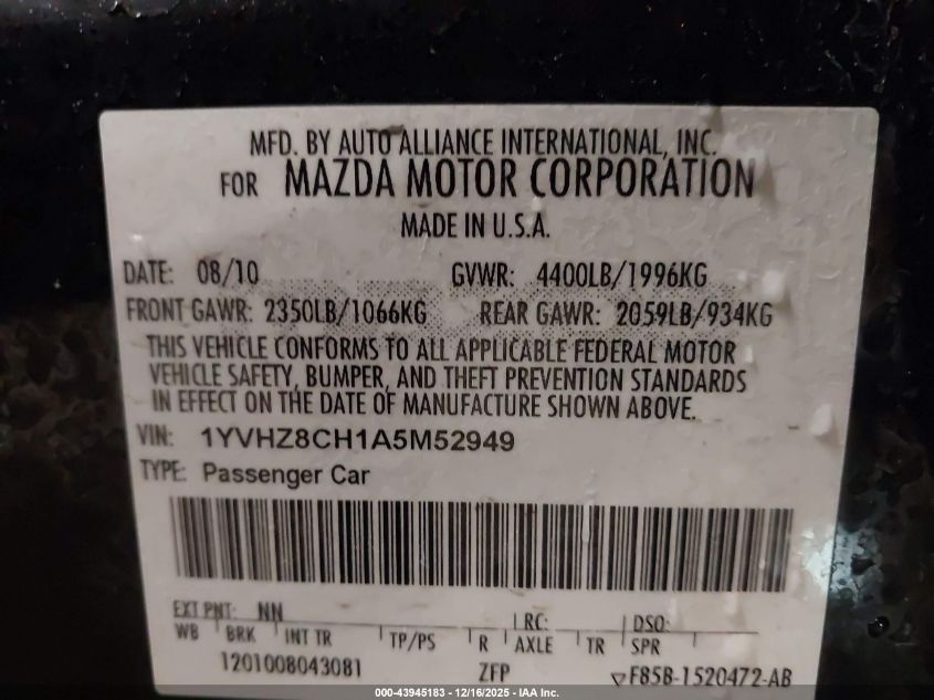2010 MAZDA 6 2010 року Бензин, 2.5, Передній привід, vin - 1YVHZ8CH1A5M52949 з США