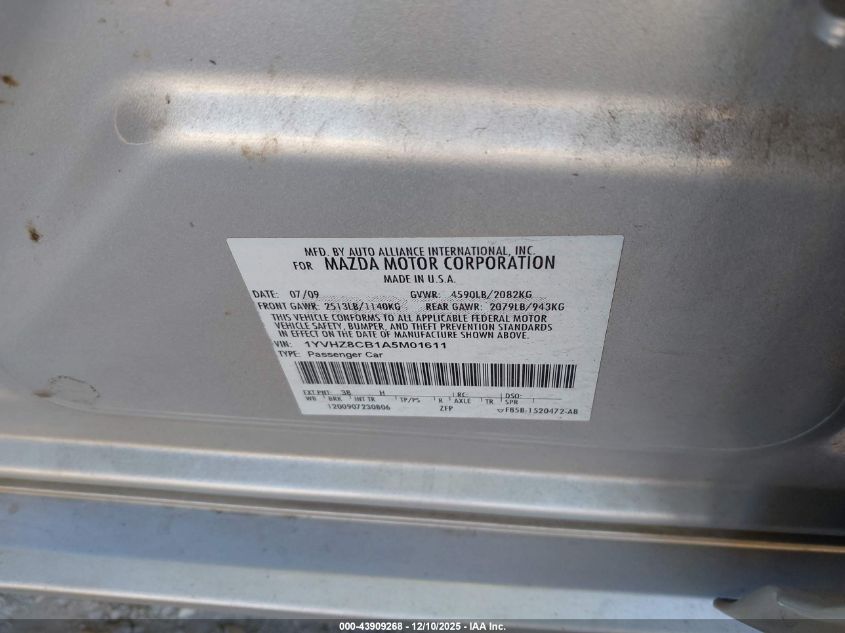 2010 MAZDA 6 2010 року Бензин, 3.7, Передній привід, vin - 1YVHZ8CB1A5M01611 з США