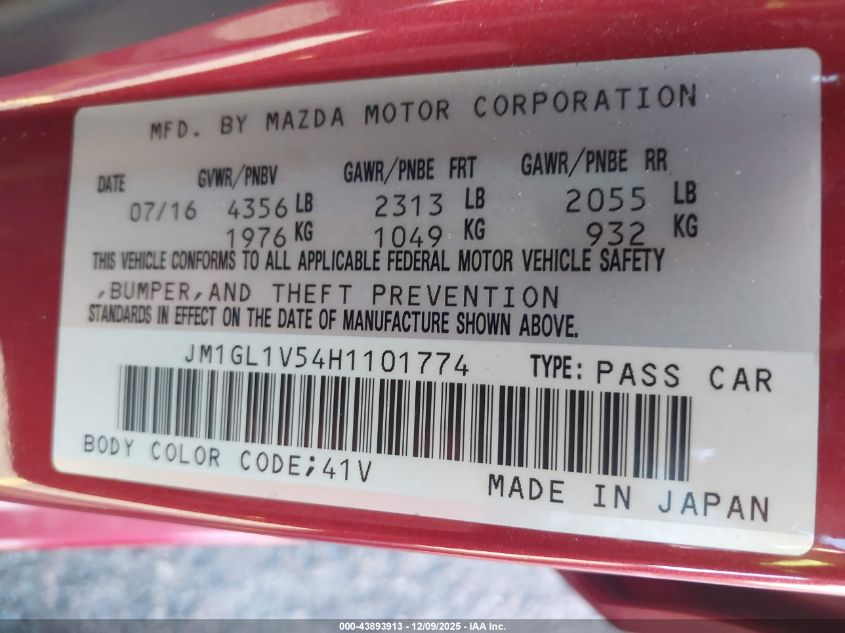 2017 MAZDA 6 2017 року Бензин, 2.5, Передній привід, vin - JM1GL1V54H1101774 з США