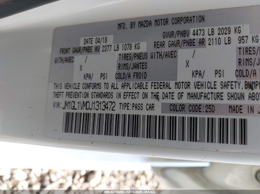 2018 MAZDA 6 2018 року Бензин, 2.5, Передній привід, vin - JM1GL1VM0J1313472 з США