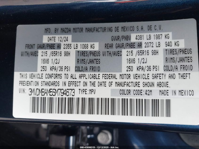 2025 MAZDA CX-30 2025 року Бензин, 2.5, Повний привід, vin - 3MVDMBAM5SM794673 з США