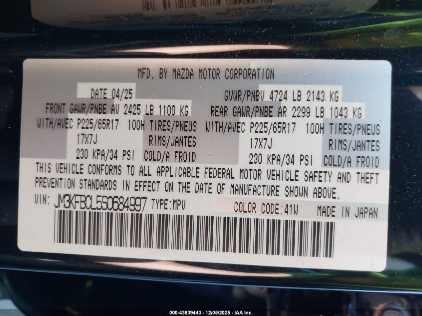 2025 MAZDA CX-5 2025 року Бензин, 2.5, Повний привід, vin - JM3KFBCL5S0684997 з США