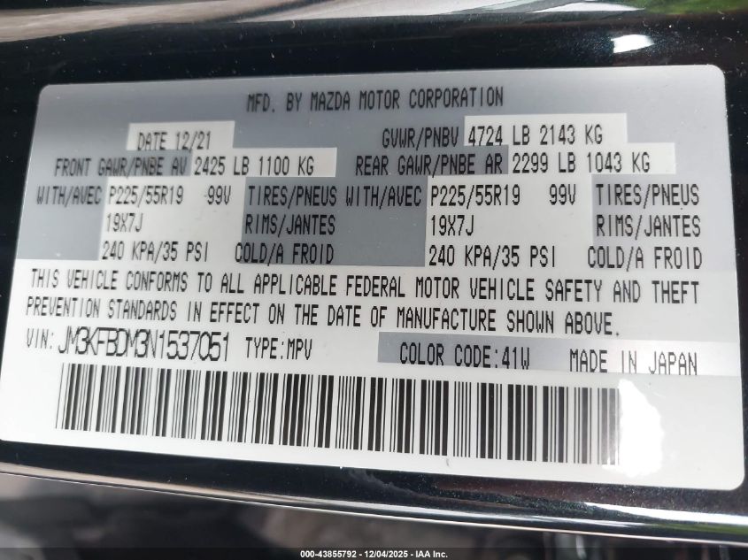 2022 MAZDA CX-5 2022 року Бензин, 2.5, Повний привід, vin - JM3KFBDM3N1537051 з США