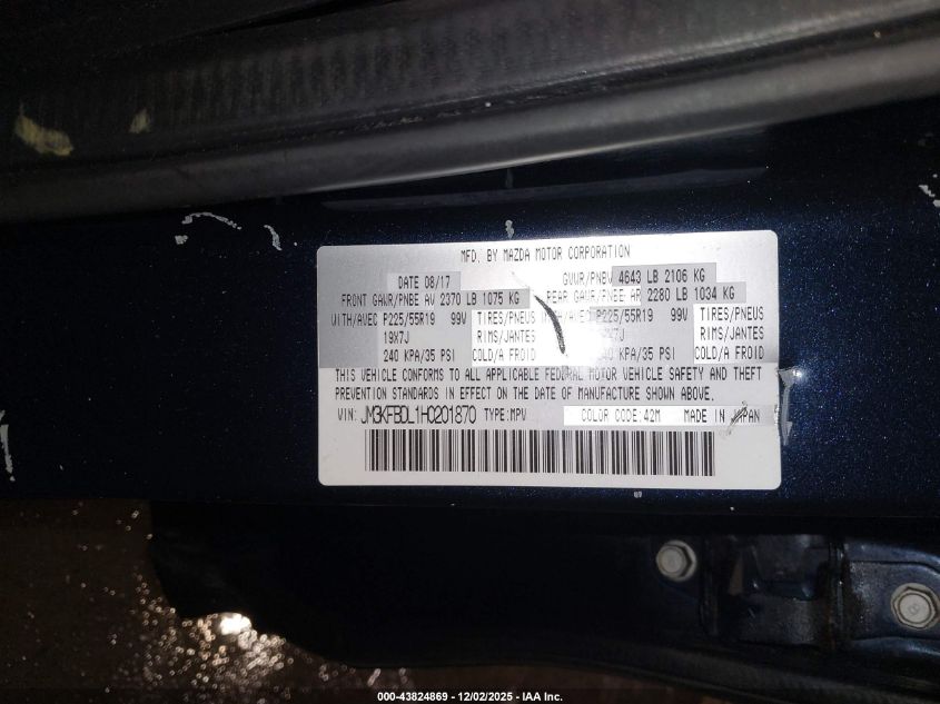 2017 MAZDA CX-5 2017 року Бензин, 2.5, Повний привід, vin - JM3KFBDL1H0201870 з США
