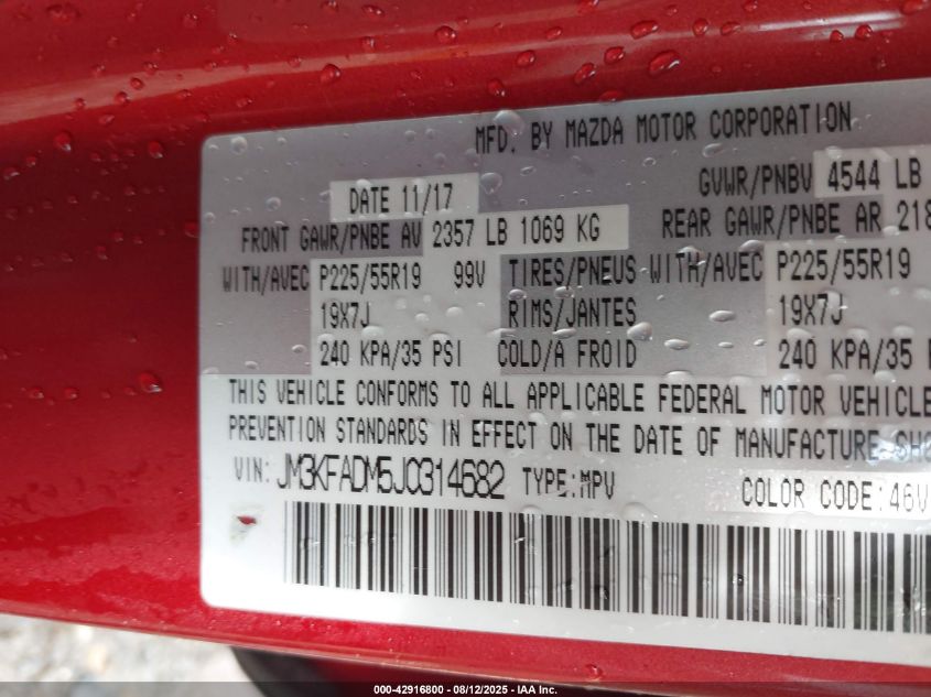 2018 MAZDA CX-5 2018 року Бензин, 2.5, Передній привід, vin - JM3KFADM5J0314682 з США