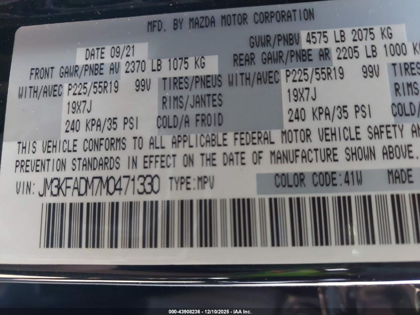 2021 MAZDA CX-5 2021 року Бензин, 2.5, Передній привід, vin - JM3KFADM7M0471330 з США