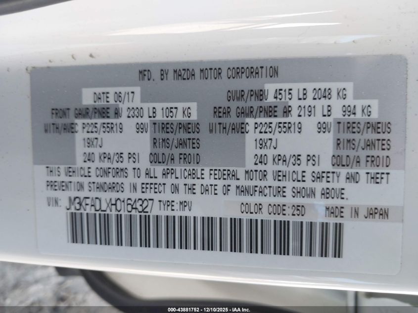 2017 MAZDA CX-5 2017 року Бензин, 2.5, Передній привід, vin - JM3KFADLXH0164327 з США