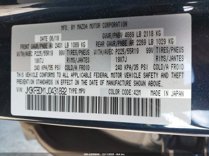 2018 MAZDA CX-5 2018 року Бензин, 2.5, Повний привід, vin - JM3KFBDM1J0431892 з США