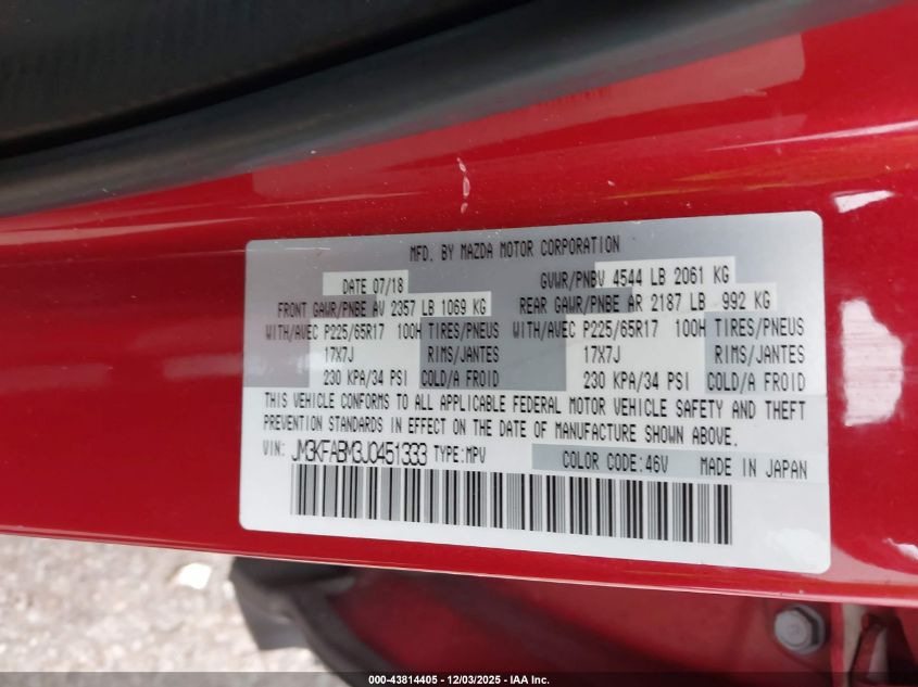 2018 MAZDA CX-5 2018 року Бензин, 2.5, Передній привід, vin - JM3KFABM3J0451333 з США