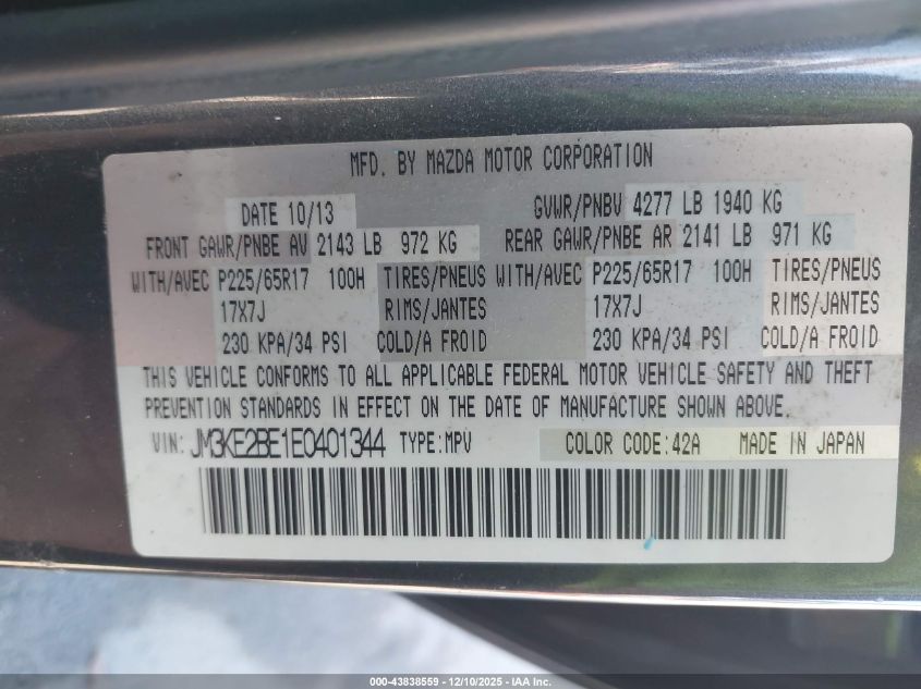 2014 MAZDA CX-5 2014 року Бензин, 2.0, Передній привід, vin - JM3KE2BE1E0401344 з США