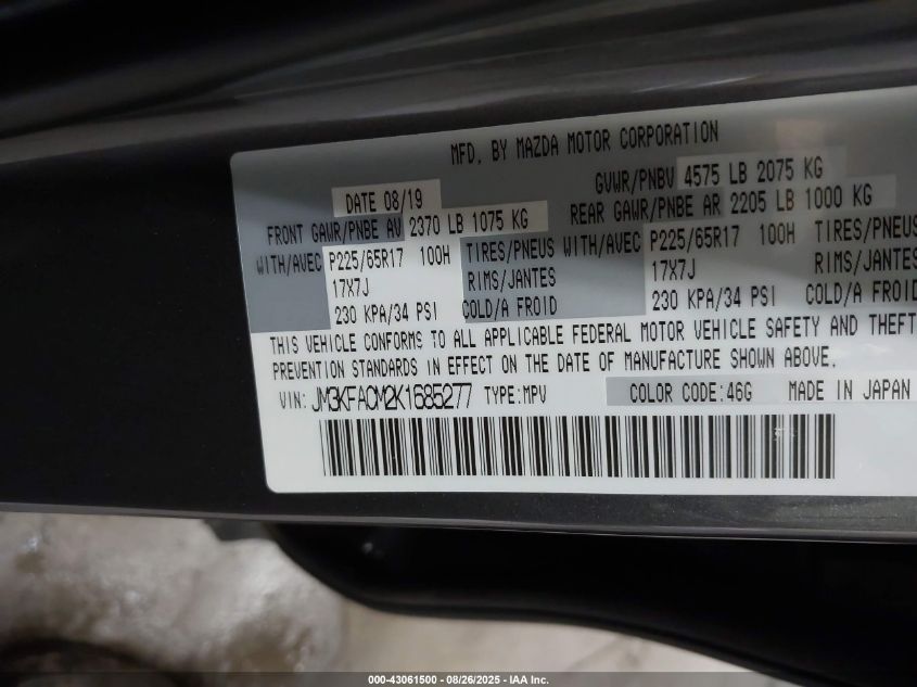 2019 MAZDA CX-5 2019 року Бензин, 2.5, Передній привід, vin - JM3KFACM2K1685277 з США