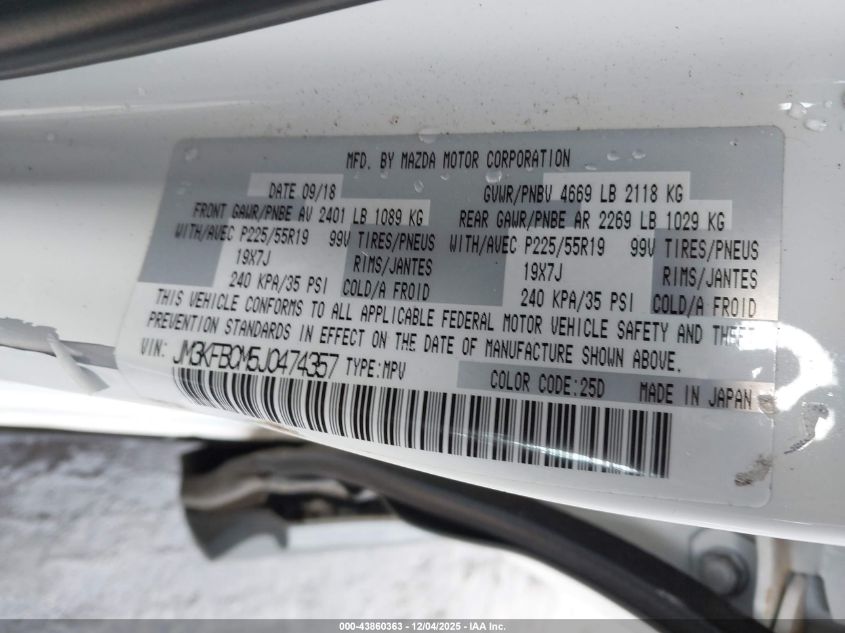2018 MAZDA CX-5 2018 року Бензин, 2.5, Повний привід, vin - JM3KFBCM5J0474357 з США