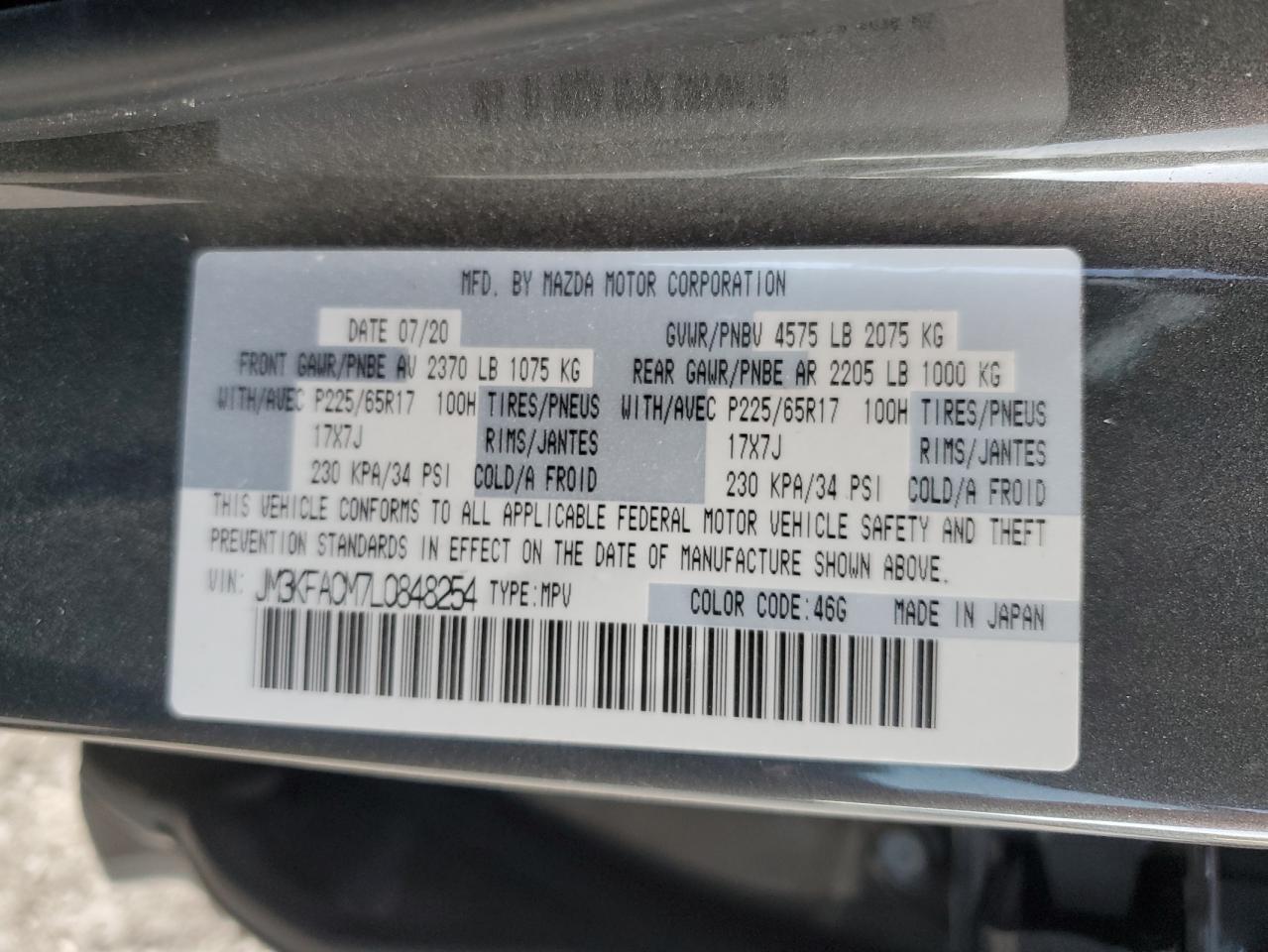 2020 MAZDA CX-5 2020 року Бензин, 2.5, , vin - JM3KFACM7L0848254 з США