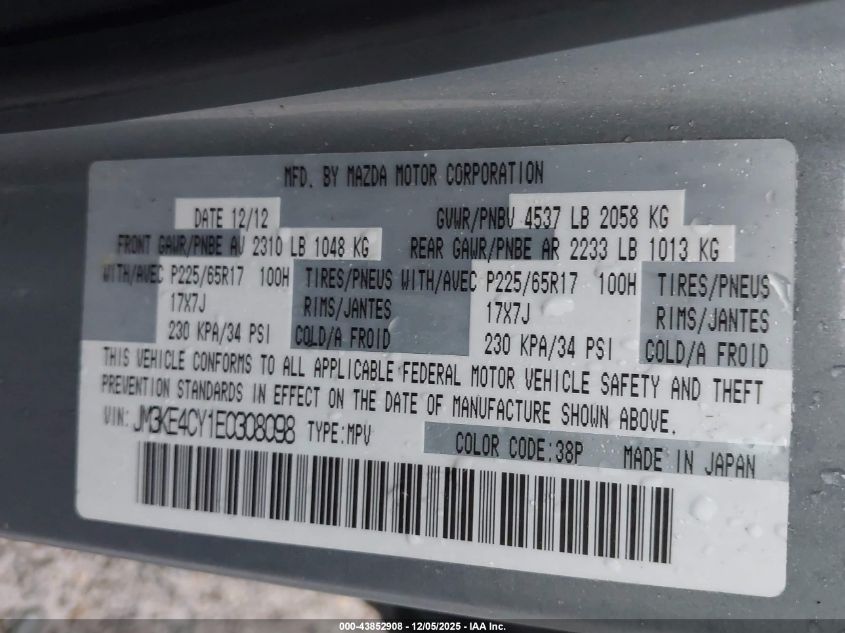 2014 MAZDA CX-5 2014 року Бензин, 2.5, Повний привід, vin - JM3KE4CY1E0308098 з США